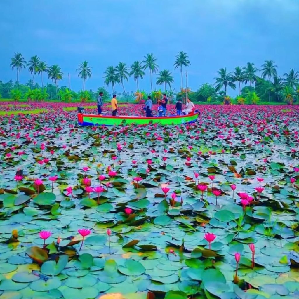 Nestled in the heart of Kerala’s Kottayam district, just a short drive from the serene backwaters of Kumarakom, Malarikkal village offers a breathtaking natural spectacle. This unassuming spot transforms into a vibrant canvas each monsoon season, drawing visitors eager for a glimpse of its expansive water lily fields. Covering 600-700 acres of former paddy lands, the area floods gently, creating a floating garden of pink, white, and red blooms that rival any postcard view.