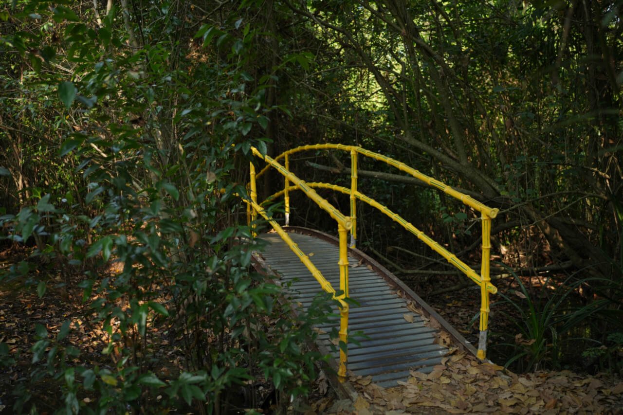 The main trail stays well-marked and runs through shaded sections lined with bamboo, pandanus, and reeds. Comfortable shoes make the walk easy, since the surface alternates between mud patches and paved stretches.