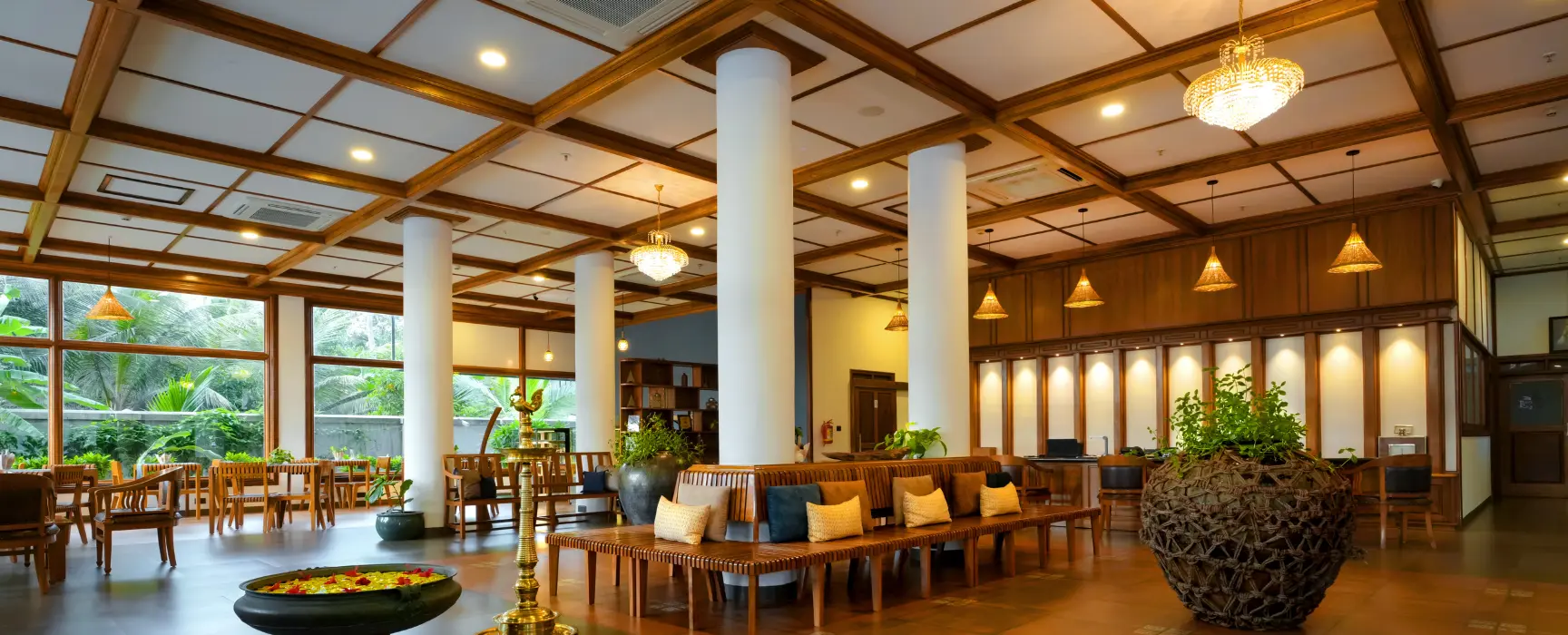 Nestled along the serene shores of Vembanad Lake in Kumarakom, Backwater Ripples Kumarakom offers a 5-star luxury retreat blending Kerala’s traditional charm with contemporary elegance. This expansive resort, spanning lush gardens and lakefront vistas, boasts 65 spacious accommodations including heritage villas, executive suites, and family duplexes, perfect for couples, families, and corporate travelers. Renowned as a top Kumarakom backwater resort, it prioritizes rejuvenation with an infinity-edge pool, Ayurvedic spa, complimentary boat rides, and eco-friendly practices, providing effortless access to the Kumarakom Bird Sanctuary, houseboat cruises, and cultural immersions in a tranquil, bird-filled paradise.
