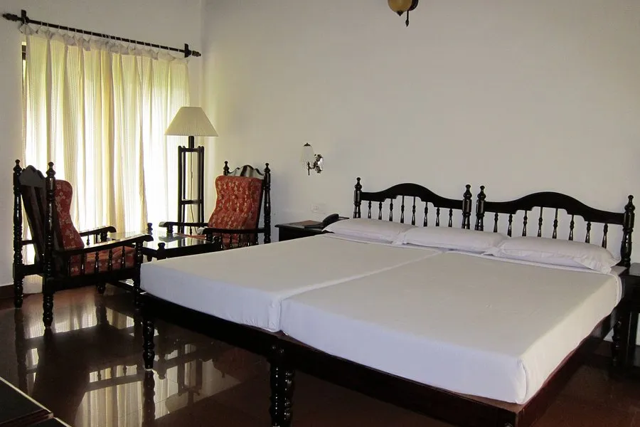 Balconies in select rooms offer glimpses of greenery or water; communal areas invite casual lounging. This modest array provides homely luxury within Kumarakom’s lakeside embrace.